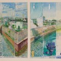 by Erik Kaye copyright 2010 watercolor diptych . Editor’s Note: This beautiful watercolor diptych by Erik Kaye shows a water canal scene of what might otherwise be ancient Japan (excluding the outboard motor!) at different times of day highlighting the… Read More ›