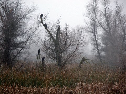 and turkey vultures gather on the spongy bank.